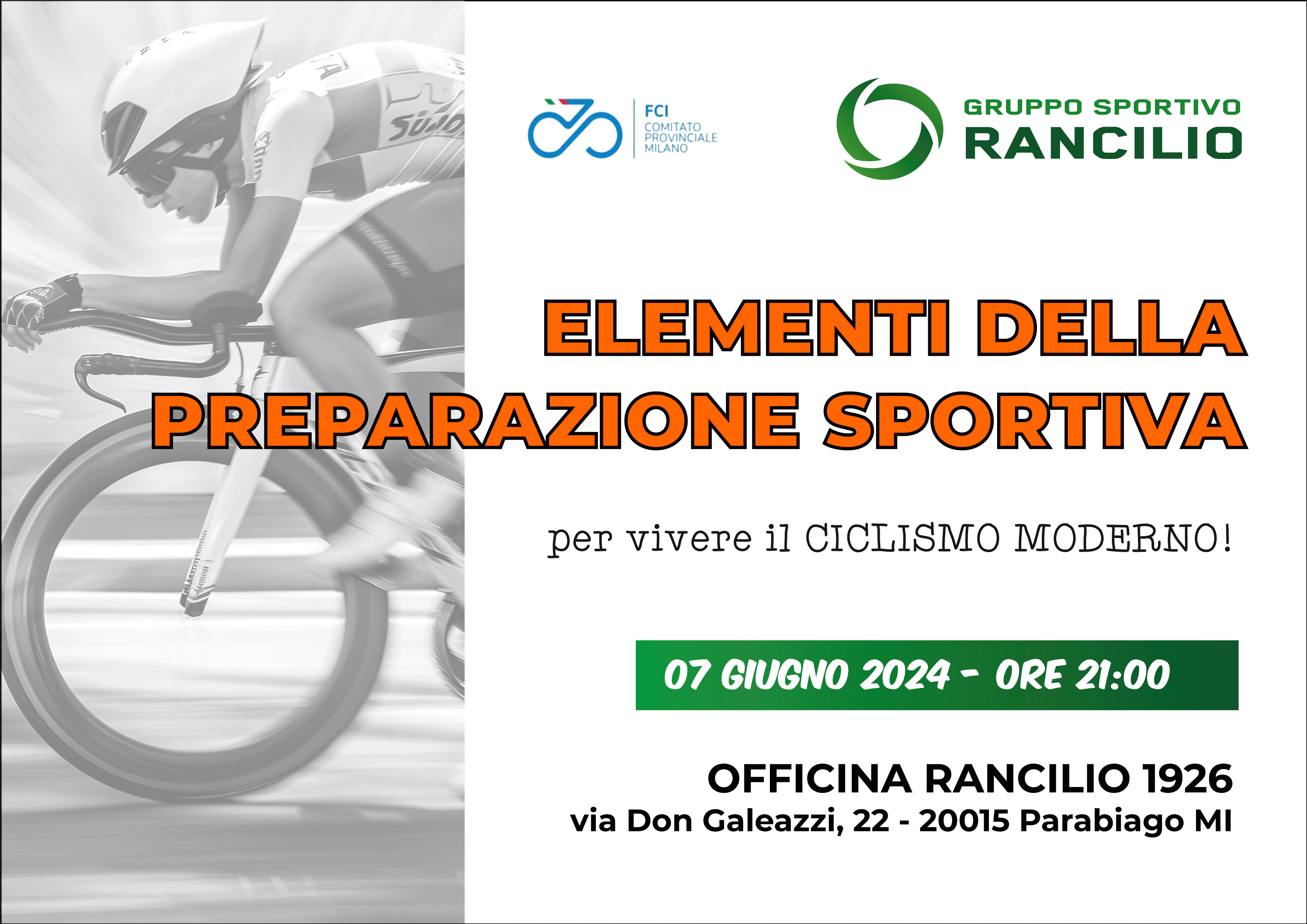Non resta quindi che segnare nella vostra agenda l’appuntamento “ELEMENTI DELLA PREPARAZIONE SPORTIVA” che si svolgerà il prossimo 7 giugnodalle ore 21:00 presso la sede del museo “Officina Rancilio 1926” a Parabiago (MI)